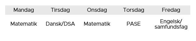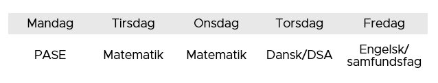 – Der undervises i de obligatoriske fag dansk, matematik og PASE. Hertil kan eleven vælge valgfag – typisk engelsk eller samfundsfag
